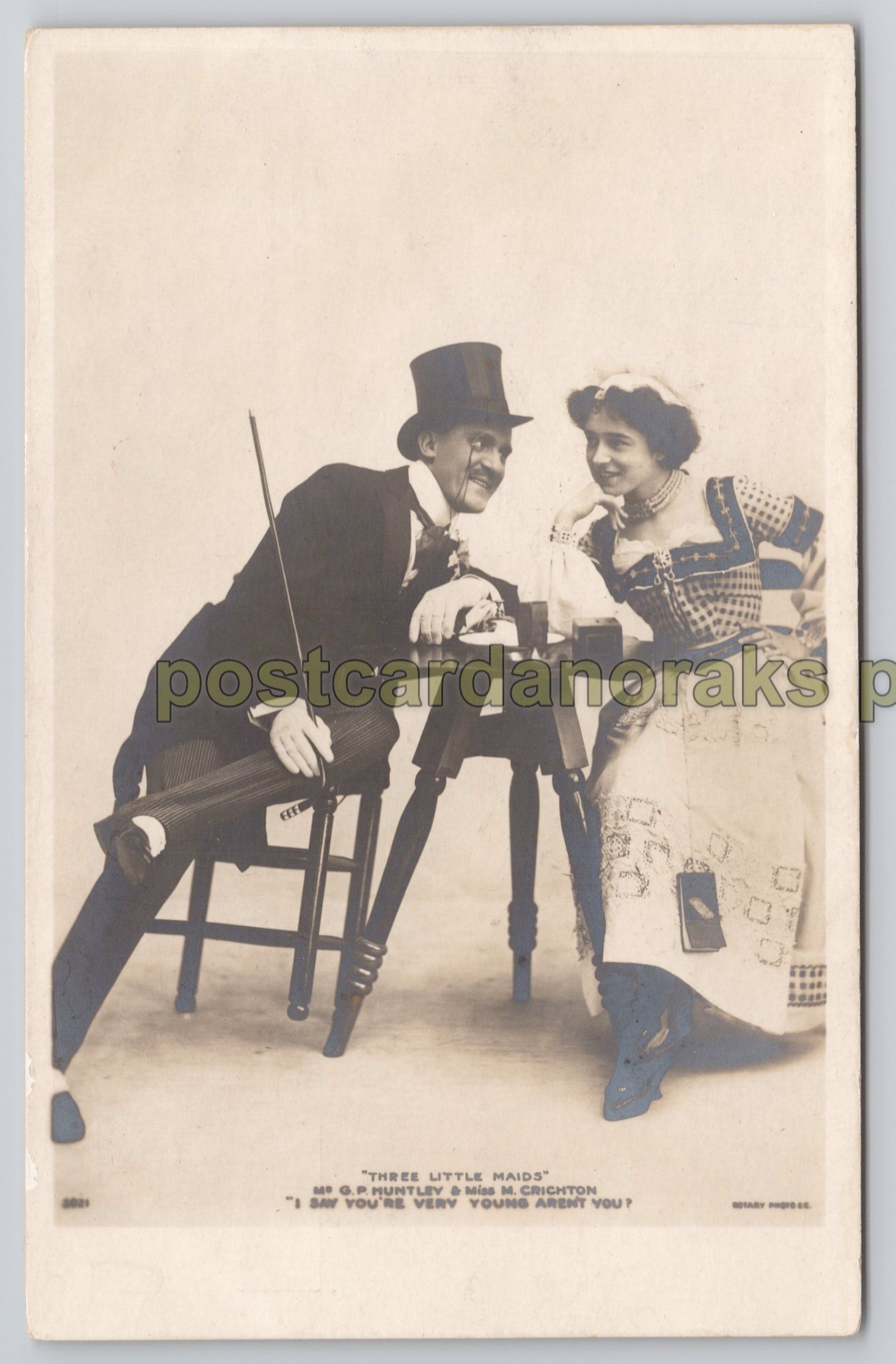 Three Little Maids Huntley Crichton Postcard. Actors G.P. Huntley & Miss. M. Crichton. C.1918, good condition throughout.