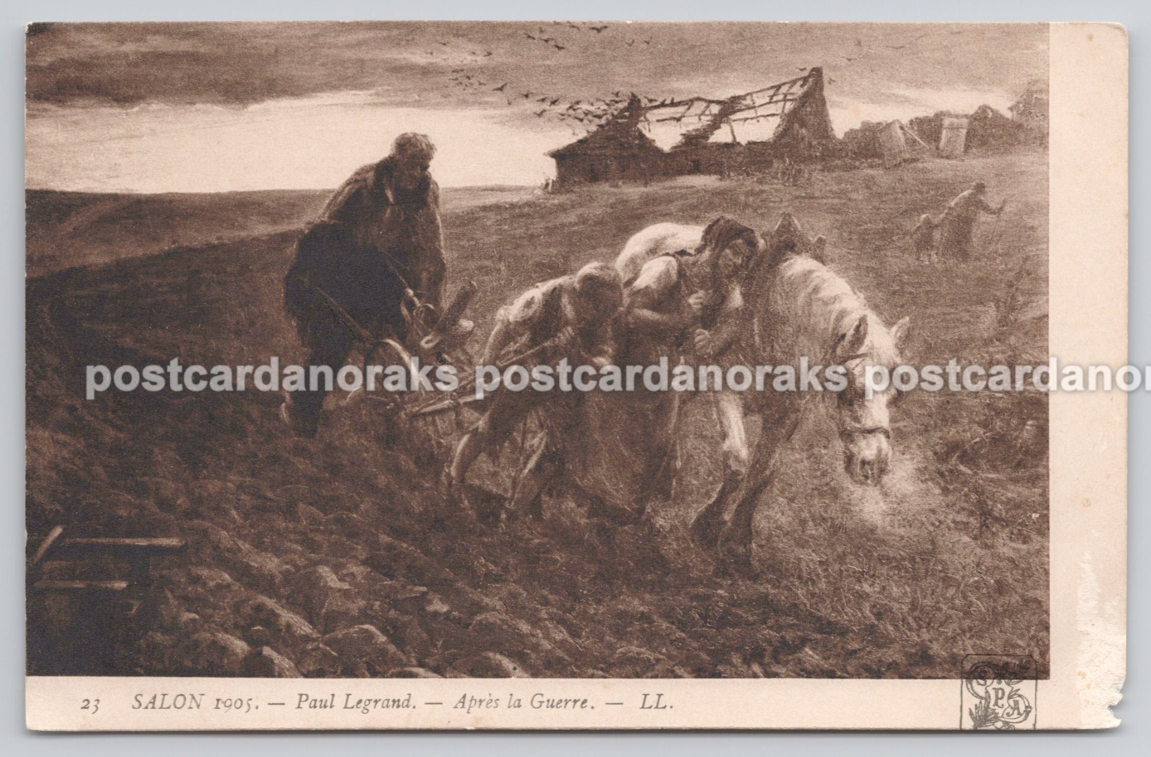 Apres La Guerre, Salon 1905, Paul Legrand. Attractive sepia effect postcard.Has not been posted, Carte Postale. Some damage to far lower corner, see scan.