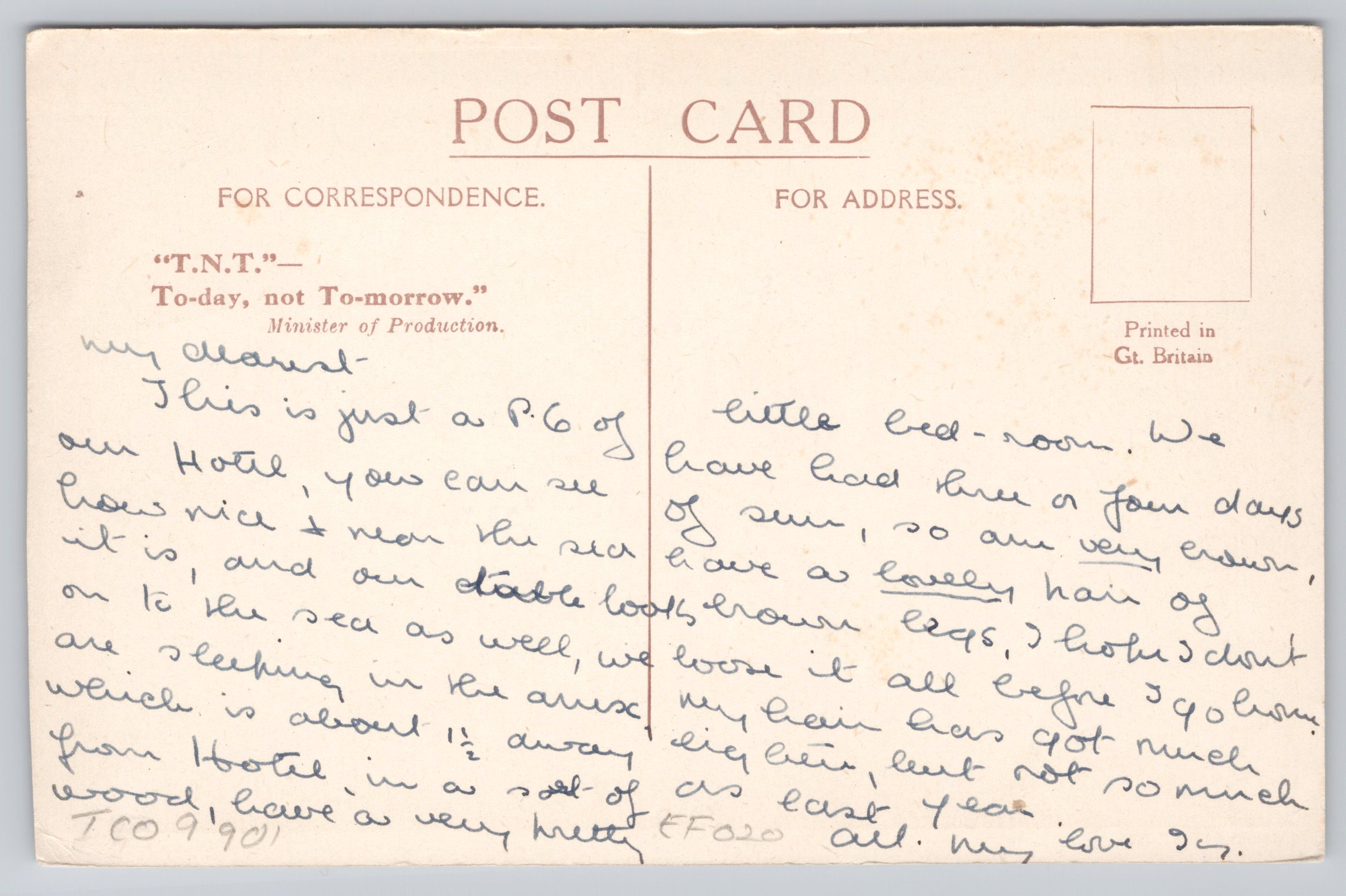 Back Of Postcard has a message from the then Minister Of Production. “T.N.T.”- Today, not Tommorow