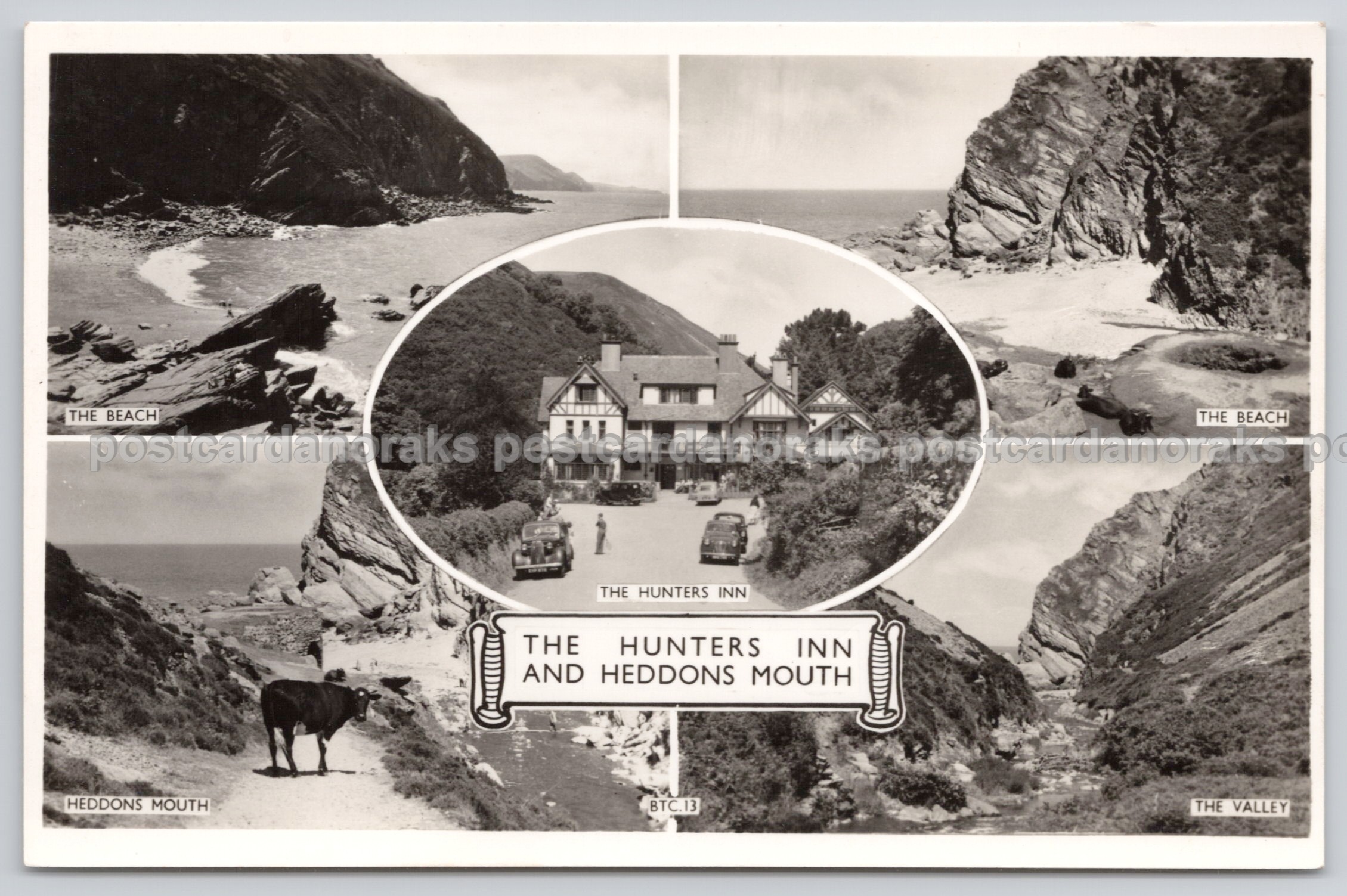 RPPC Real Photo Postcard, with classic cars. Nice cameo centre of Hunters Inn, very good clean condition. Published by Lilywhite.
