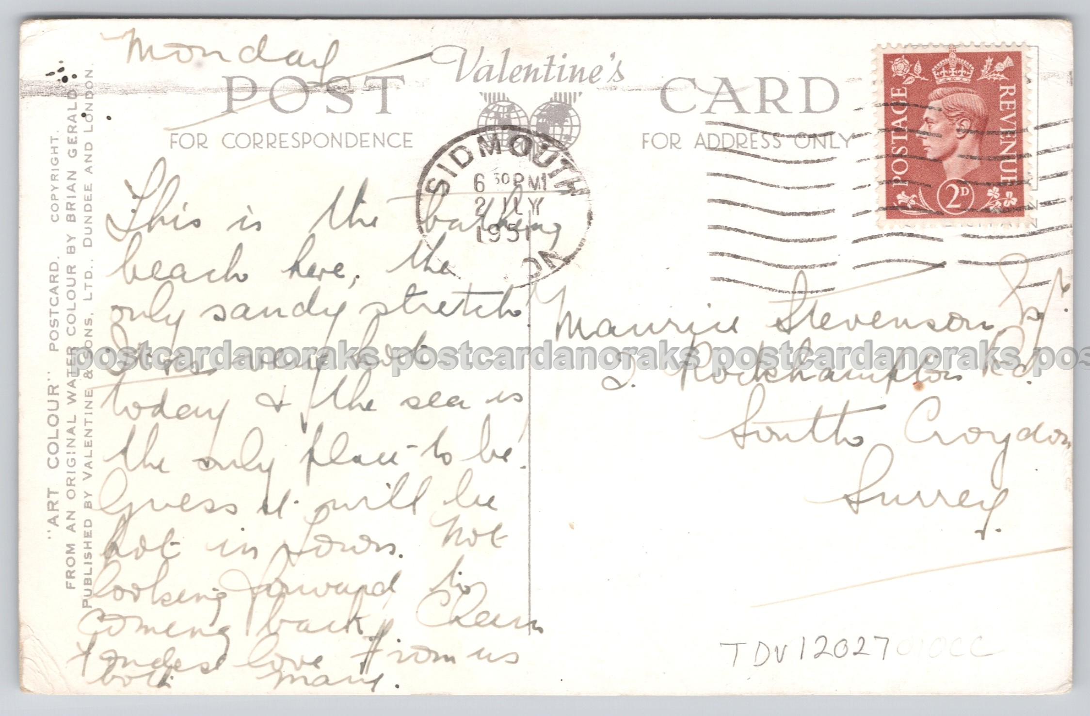 Genuine original Art Colour Valentine’s postcard, based on a water colour by the artist, Brian Gerald. Check scans for condition of postcards at this age.