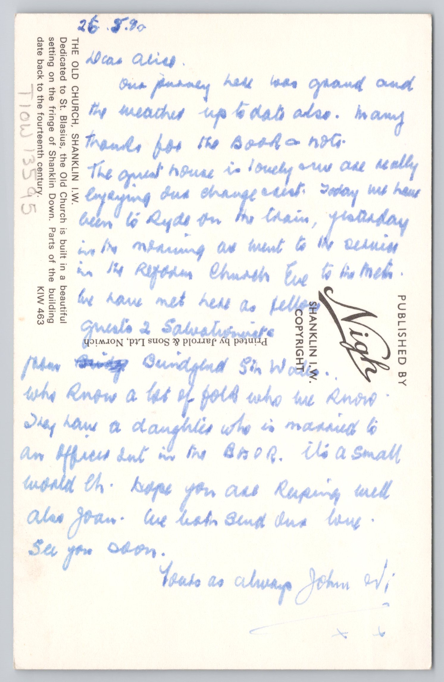 Locally published in Shanklin by Nigh., church is dedicated to St. Blasius