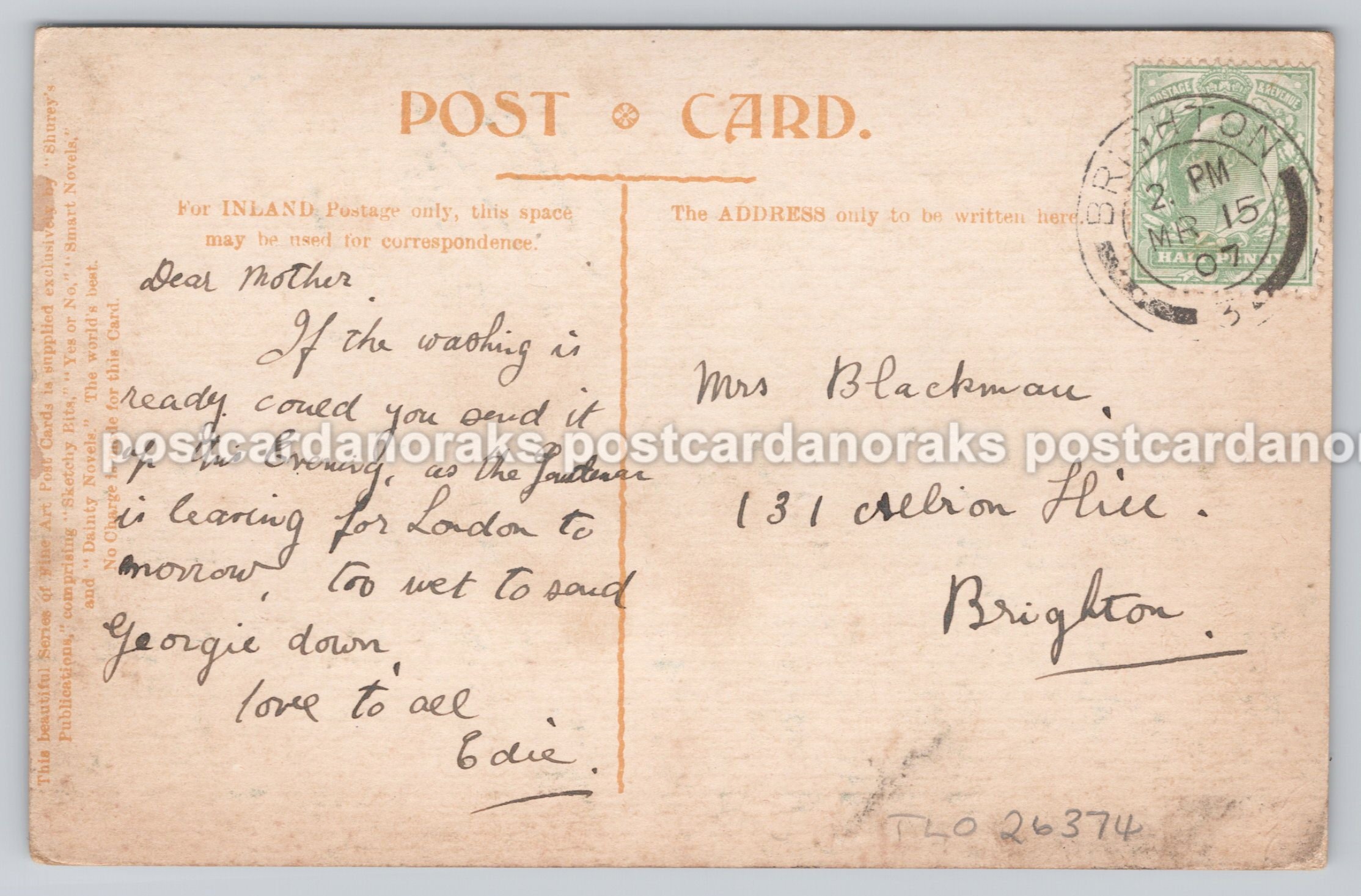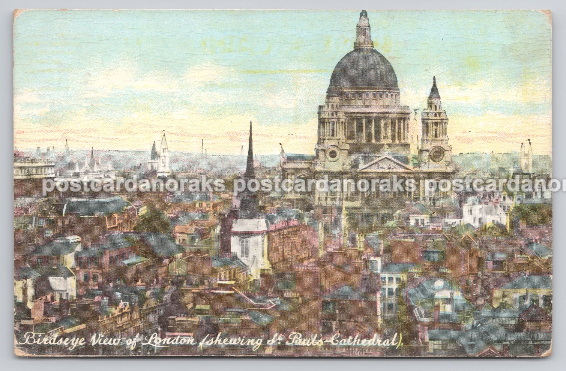 Birdseye view of London, showcasing the beautiful Wren building. Vintage view, in very good clean & tidy condition, posted out in 1907 to an addressee in Brighton Sussex