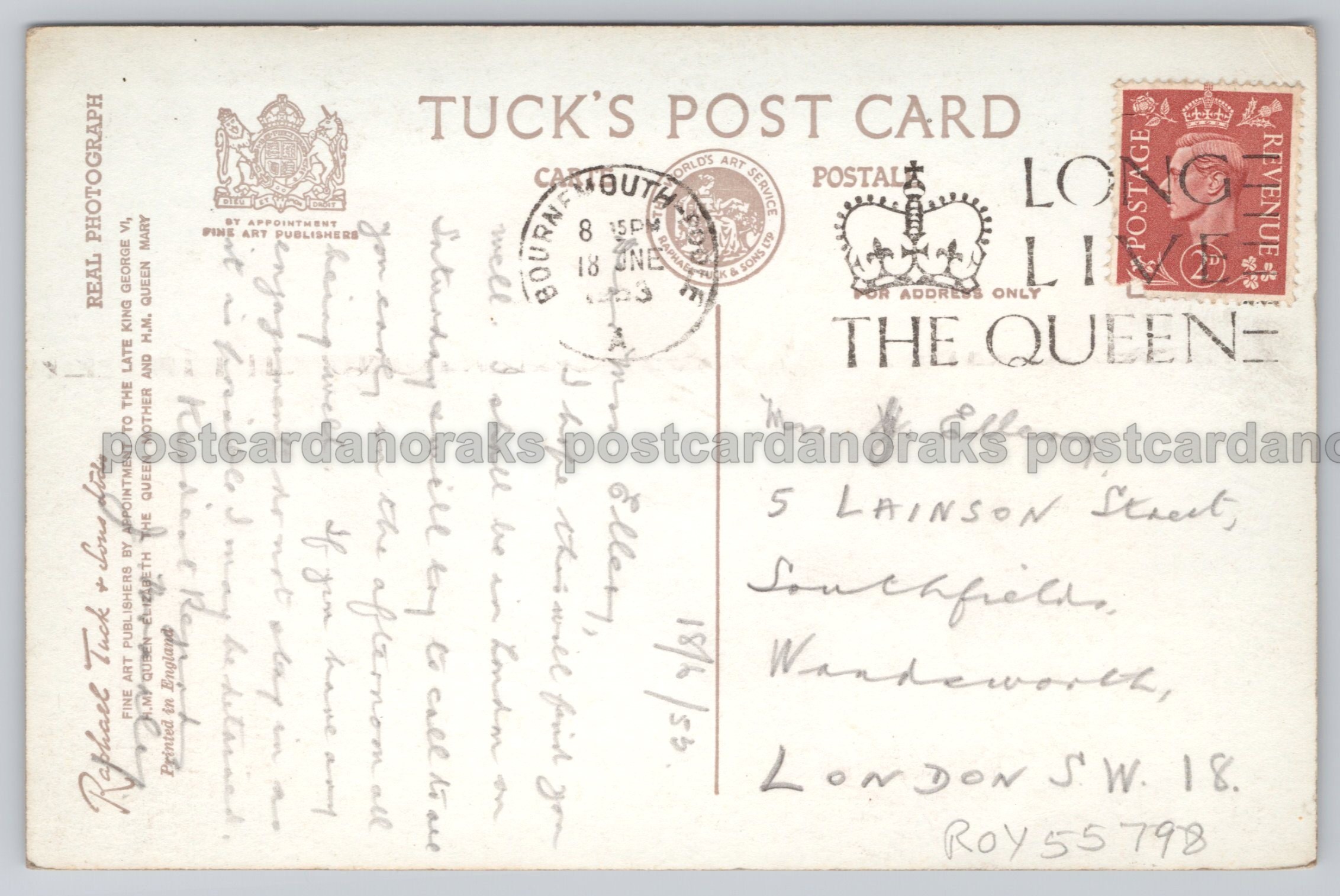 From leading publisher Raphael Tuck. Reverse shows cancel franking over 2d stamp, Long Live The Queen.