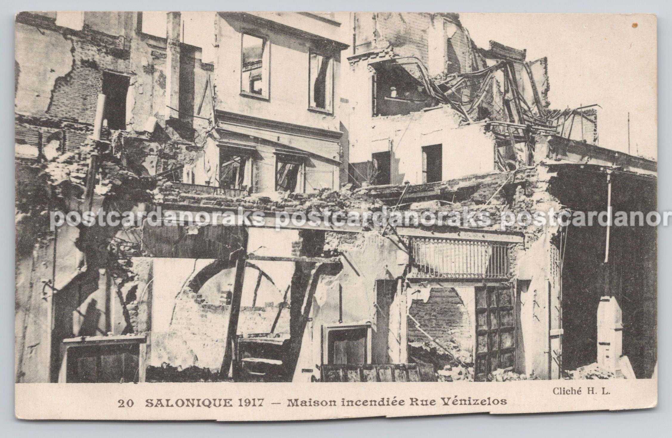 Postcard Salonique 1917 Maison Incendiee Rue Venizelos. Postcard looks to have been trimmed slightly at base. Check scan before intended purpose. Genuine original Cate Postale published from Versailles France.