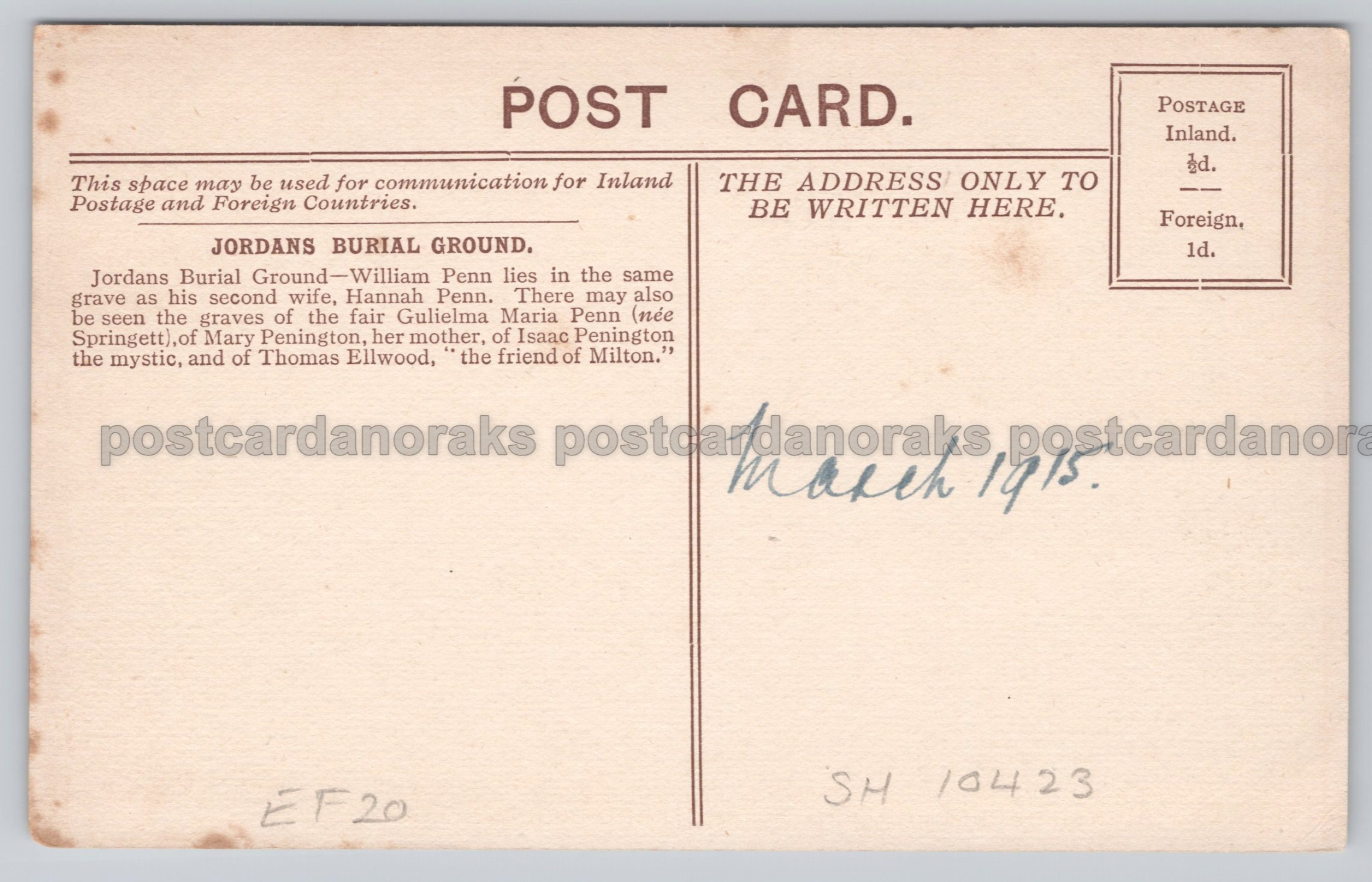 Antique postcard, showing graves at Jordans. There is a full but unobtrusive dofficial desciption on the back of this postcard.