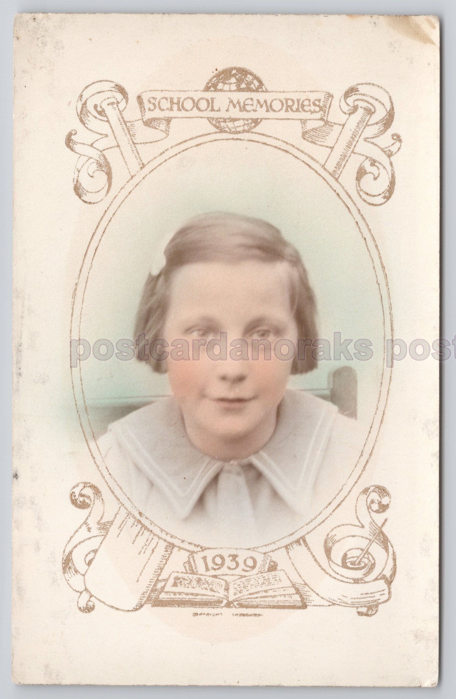 School Memories Xpdograph Type1939 Postcard. Generally printed for use as a photo or postcard, due to plain back.See item ‘School Memories Xpdograph Type 1940 Postcard’ for similar.