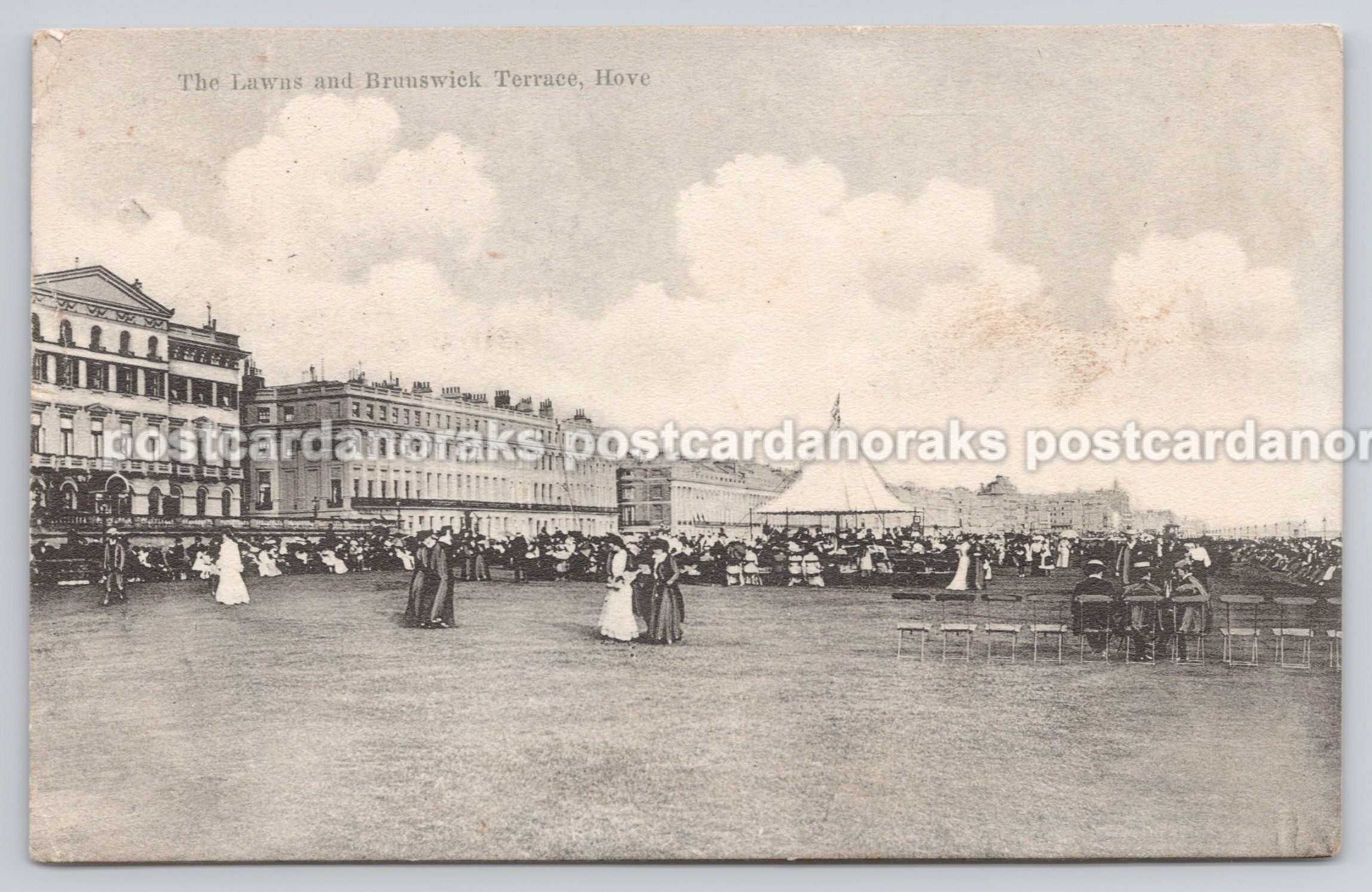 Published by Boots The Chemist, postcard shows activities on Brunswick Terrace, prior to 1918. Posted out to a local Brighton addressee. Nostalgic views of yesteryear.