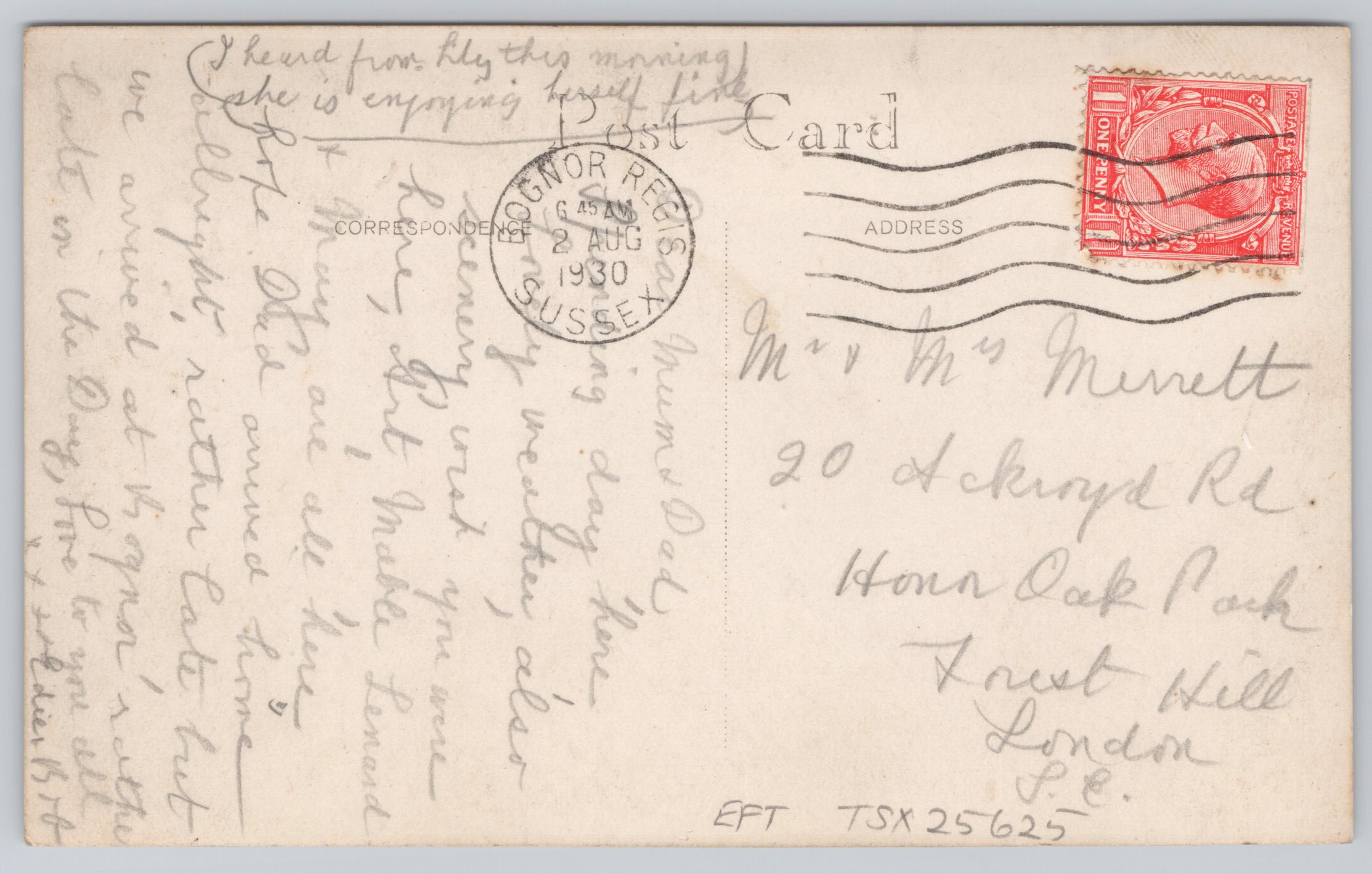 Posted out from nearby Bognor in 1930.RPPC Real Photo postcard.
