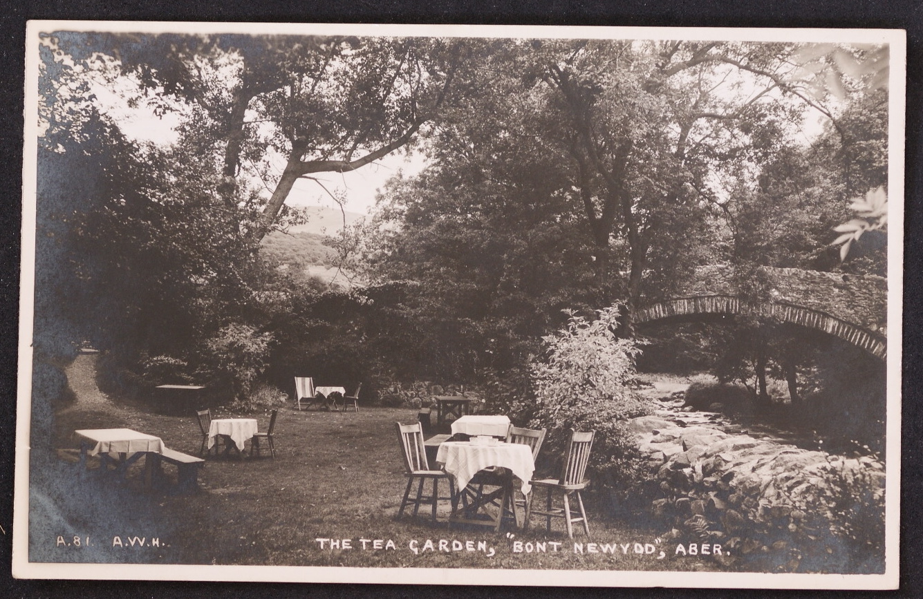 Aber Bont Newydd Tea Garden Postcard, Aber Bont Newydd Tea Garden Postcard, has a completely blank reverse side. In excellent condition, has not been posted