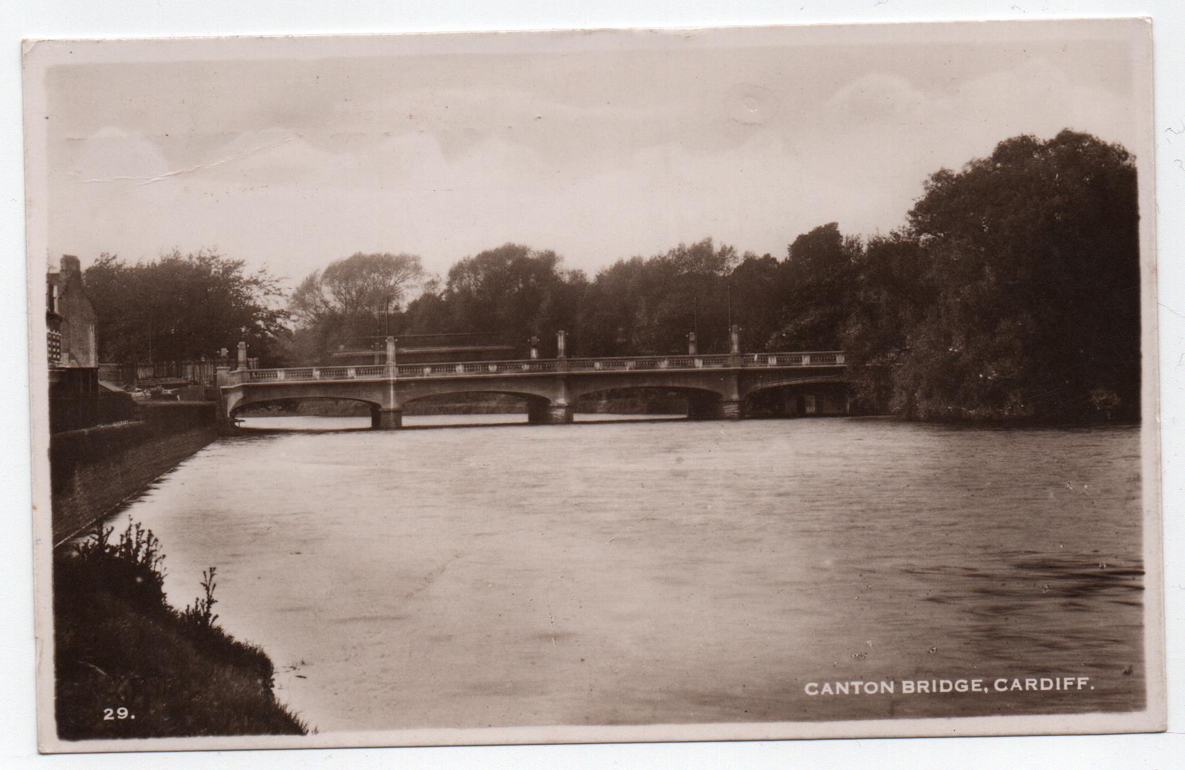 Real Photograph Postcard of Cardiff Canton Bridge Vintage 1949, in very good condition both sides, posted locally to, Parkstone Dorset