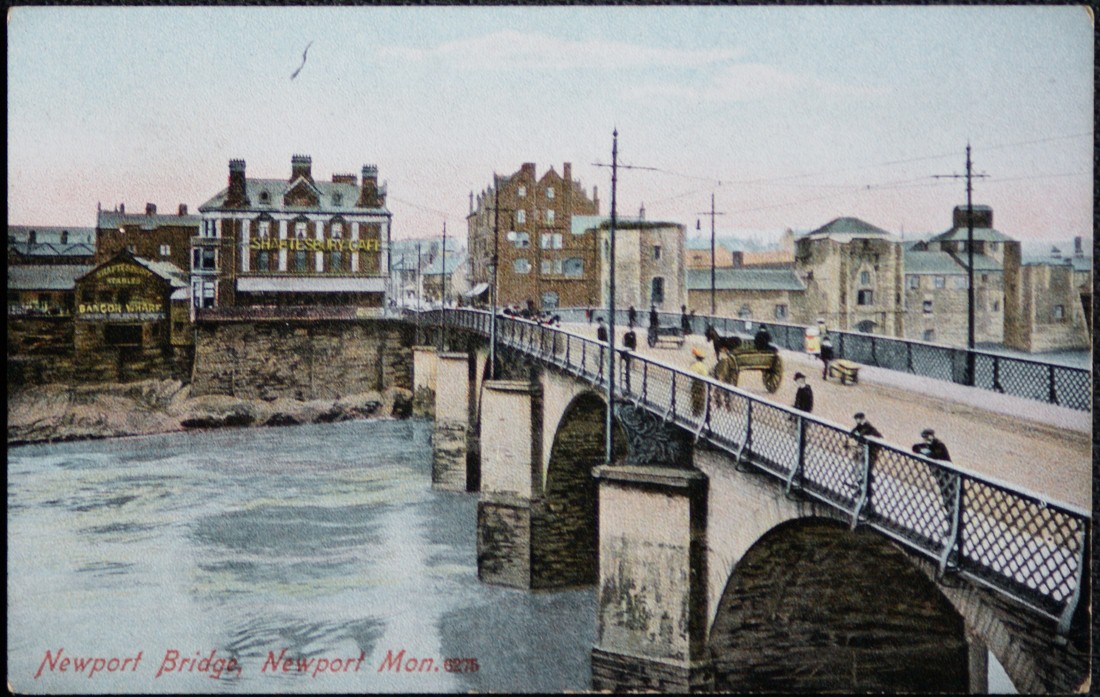 Newport Bridge Wales Antique Postcard, vintage view, horse & cart, Shaftesbury Cafe, from publisher M.J.R. No.6275, ingood order throughout, has not been posted.