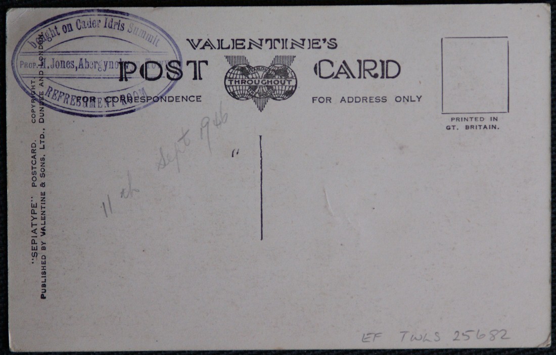 Towyn Dysynni Wales Vintage Postcard,has inked date stamp confirming purchase at Cader Idris Summit Refreshment Rooms, handwritten note of 11th Sept 1946, in good order throughout, has not been posted.