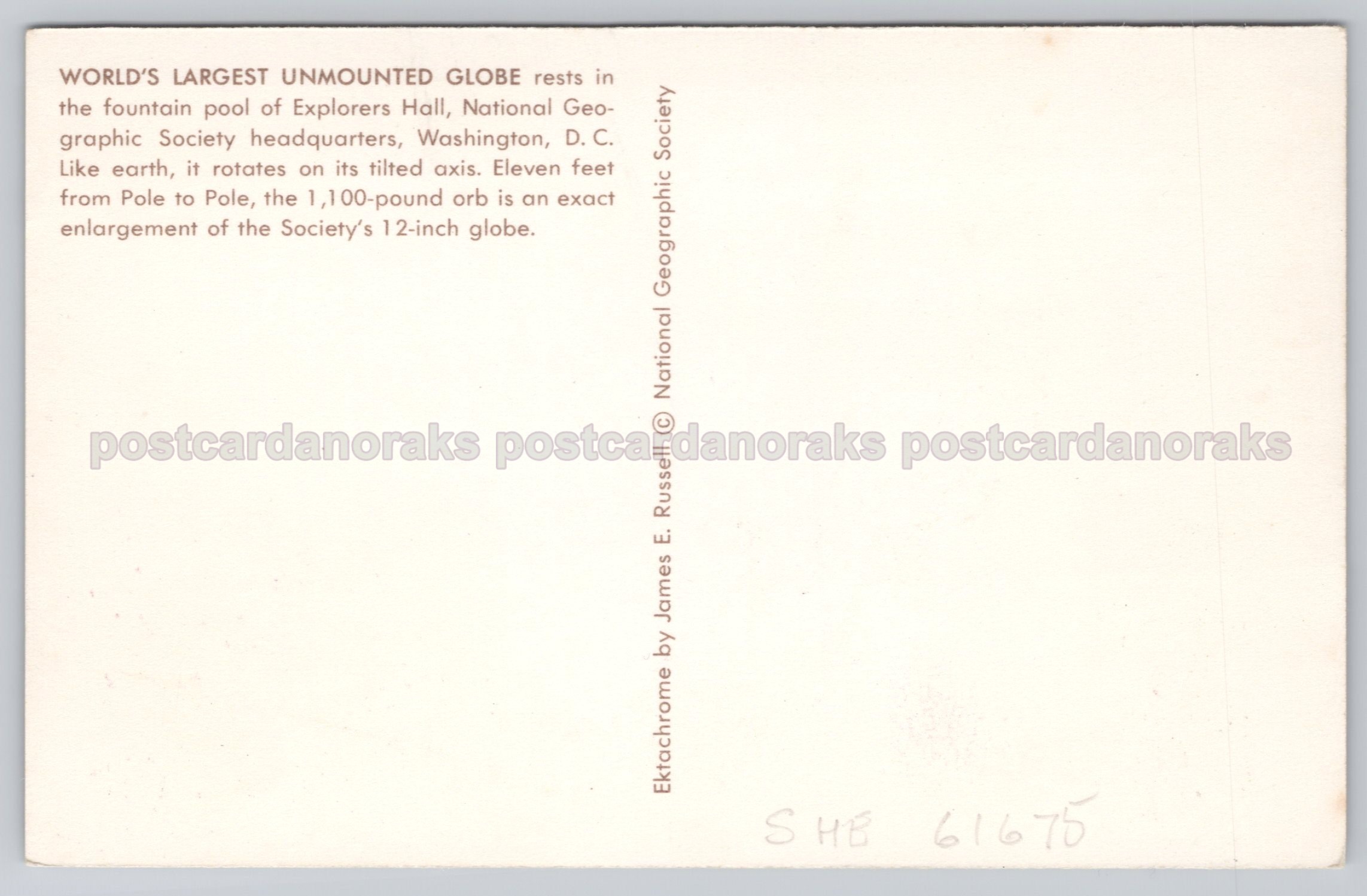 Washington D.C. World’s Largest Unmounted Globe Postcard Eleven Feet from pole to pole.